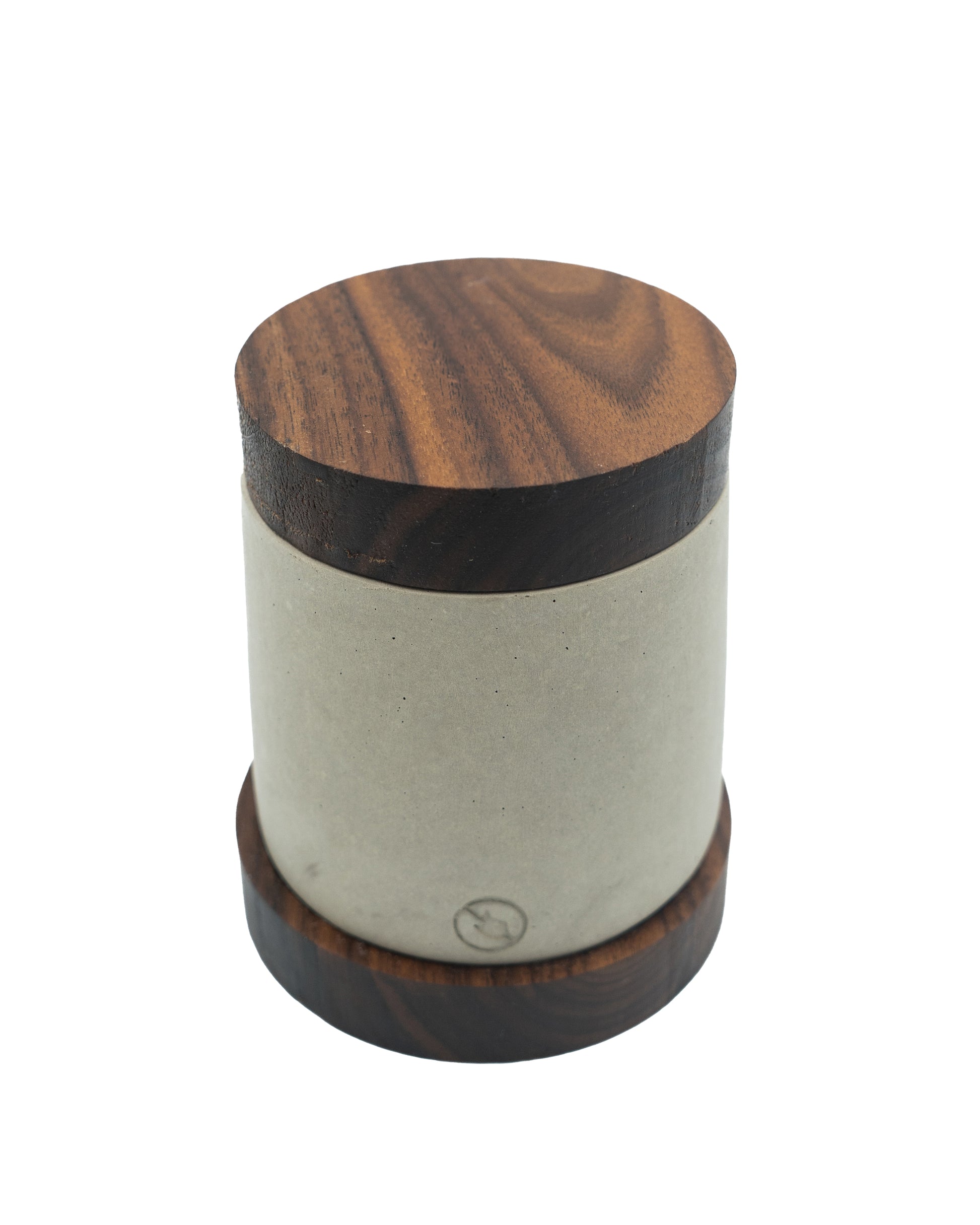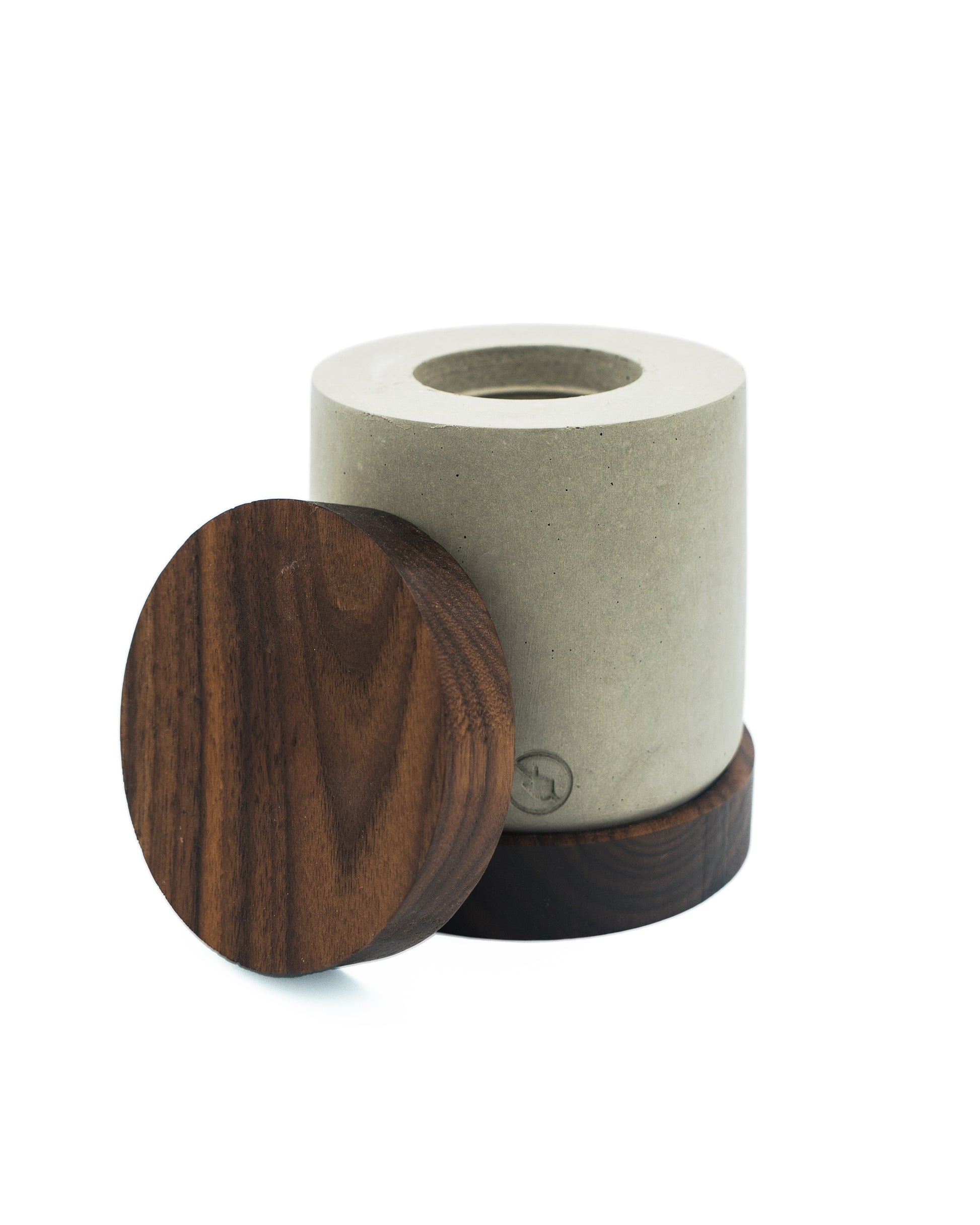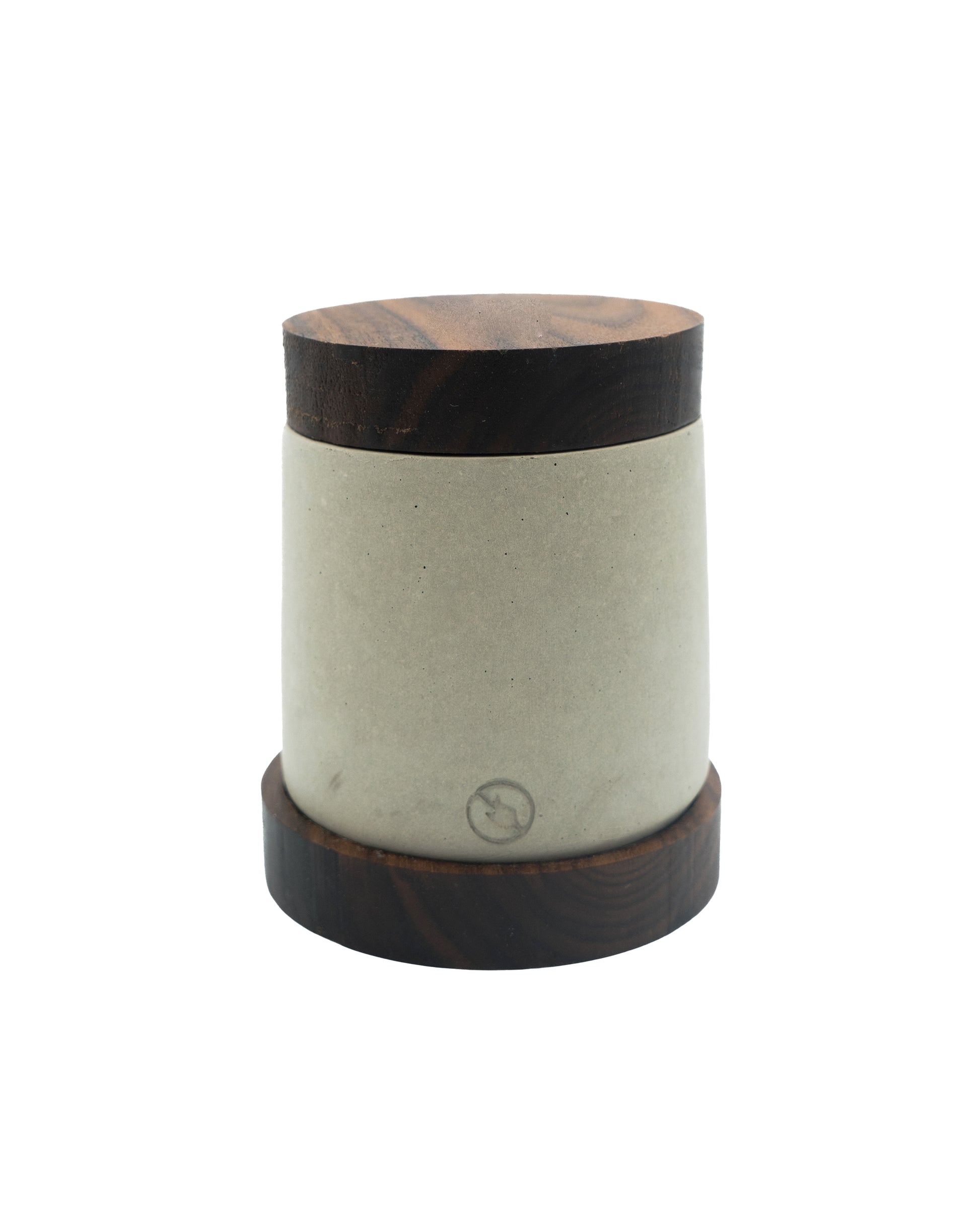 Su estructura cónica combina la robustez del concreto con la calidez de la madera, creando un diseño armonioso que aporta estilo a cualquier espacio.